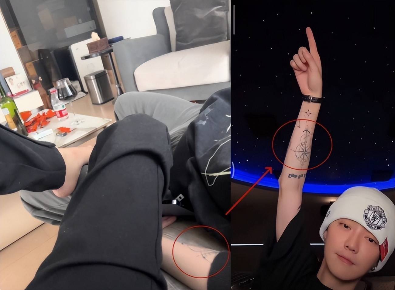 照片中男子手臂上的纹身图案及其位置,与鹿晗公开露出的纹身几乎完全吻合;其身穿的家居服款式,被证实与关晓彤曾在直播中展示的同款高度一致;更关键的是,房间背景中的家具布局、灯具造型,也被多方指认为与鹿晗和关晓彤共同居住空间的设计如出一辙。